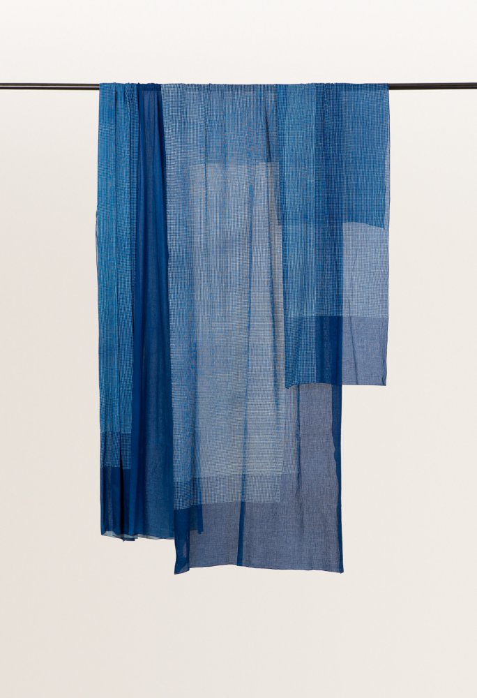 Layers consists of several hand-dyed curtains that have been patterned using the cyanotype process. The deep, rich blue is combined with delicate white lines, the overlapping of which creates intriguing patterns. The project was created in cooperation with